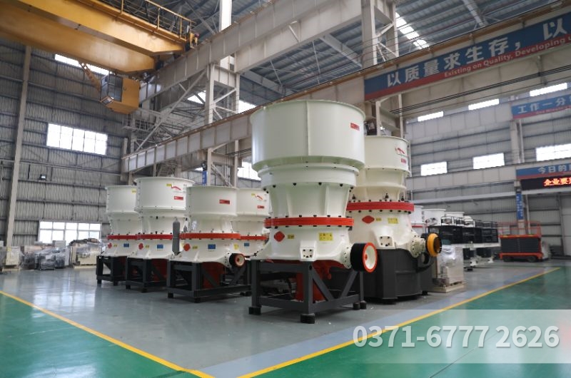 5)動錐和定錐都是正置,動錐擺動時,在破碎腔出料口附近,動錐與定錐之間有一段間隙相等的平行帶,使成品料度均勻。進料口尺寸不大,能夠處理的都是經過初次破碎的物料。