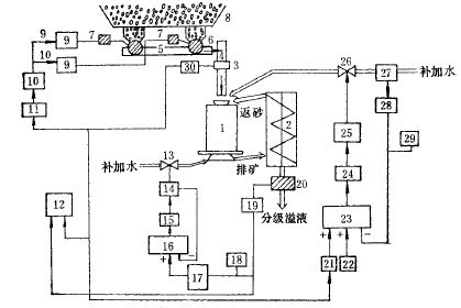 3)根據(jù)濃度計(jì)測(cè)量分級(jí)機(jī)溢流濃度,調(diào)節(jié)分級(jí)機(jī)補(bǔ)加水,以調(diào)節(jié)分級(jí)溢流濃度的閉環(huán)控制。