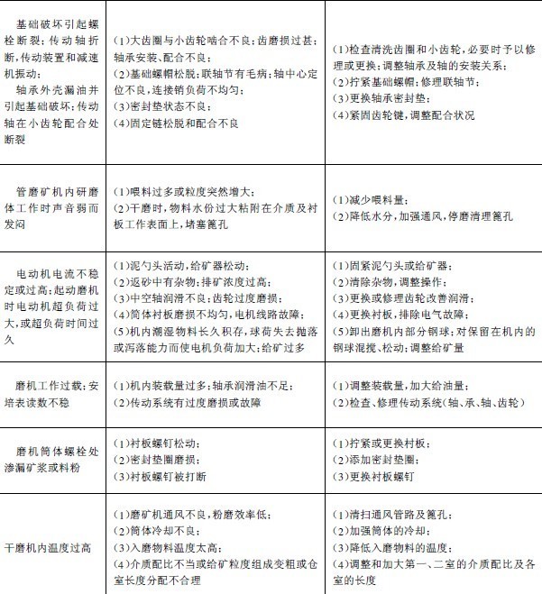 當(dāng)遇到突然停電時(shí),必須立即停止給礦和給水,并切斷電源,關(guān)停其他設(shè)備。為了防止以后起動(dòng)困難,用水沖洗磨礦機(jī)內(nèi)部。加強(qiáng)日常檢杏維護(hù)是減少磨機(jī)事故的重要措施。每次交接班時(shí)要檢查磨機(jī)組的所有連接螺栓的緊固情況,如發(fā)現(xiàn)有松動(dòng)的必須停車擰緊。筒體襯板螺釘如有折斷應(yīng)及時(shí)更換,防止擦傷筒體,或礦漿外漏。定期檢查襯板磨損情況,磨到一定程度應(yīng)予以換。使用油杯潤(rùn)滑時(shí)傳動(dòng)軸承中的油做大每旬更換一次:濾油器的濾網(wǎng)不應(yīng)玷污,每隔2-3周應(yīng)清洗一次;減速機(jī)6個(gè)月檢查一次。介質(zhì)裝入量不能超過(guò)規(guī)定值。操作中如發(fā)現(xiàn)設(shè)備有不正常現(xiàn)象,應(yīng)立即停機(jī)處理。經(jīng)常清擦機(jī)器表面的油污,做到文明生產(chǎn)。