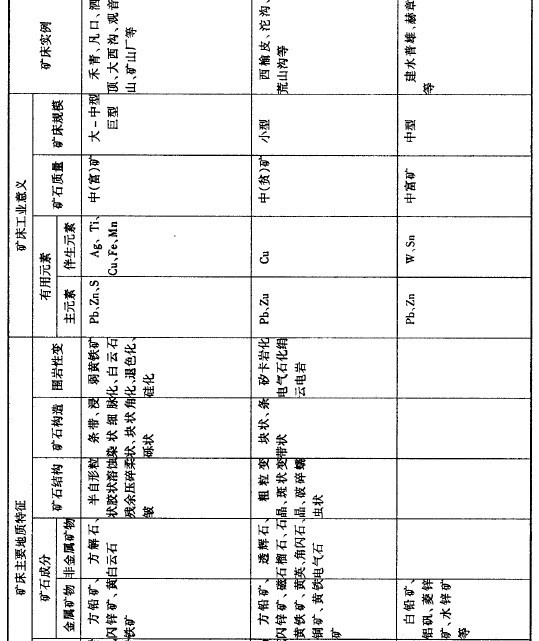 鉛、鋅的主要礦床和礦石類型