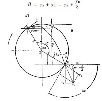 鋼球落下沖擊礦石的能量,來自它落到終點時的動能。此動能的大小,決定于鋼球的落下高度。而磨機的轉速又決定著鋼球的落下高度,所以決定磨機轉速的方法直接和分析鋼球落下時的動能有關。由圖3-2-11可知,鋼球落下高度H值為