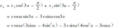 將速度vp的水平分速度vx,和垂直分速vy投到徑向分速度vn的方向上,則