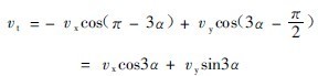 將vx和vy投到切線分速度v1的方向上,則